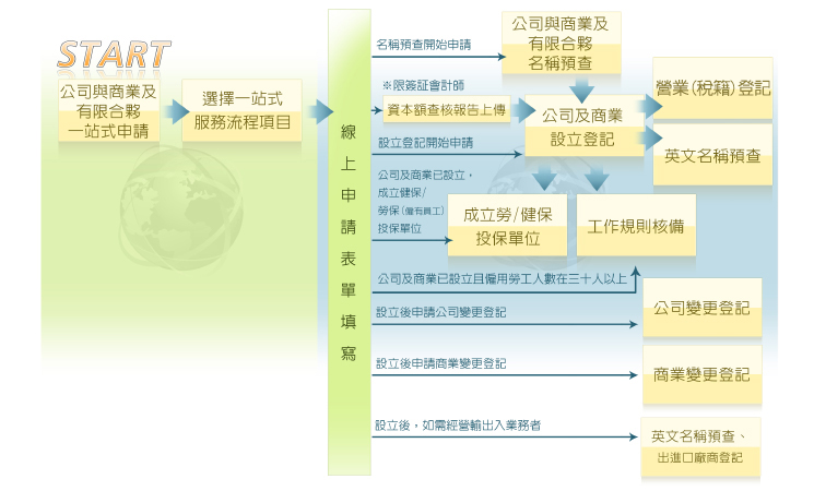 相關文件:財政部中區國稅局 - 我要當老闆/ 營業設立登記申辦流程